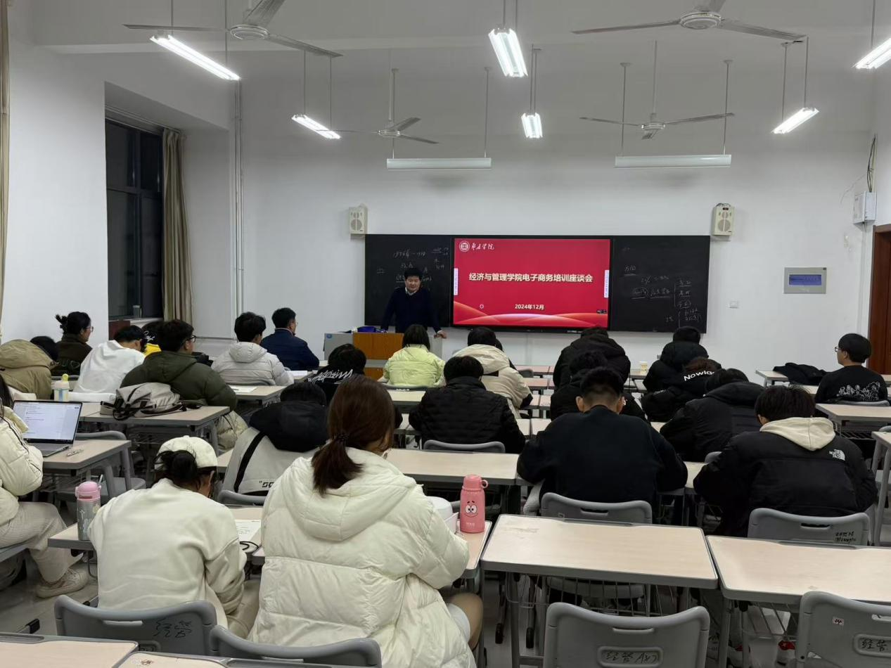 12月8日,太阳集团tyc539在豁然楼A317成功举办电子商务培训座谈会。此次座谈会邀请了优秀员工、百草园教育装备公司董事长郭方华进行现场指导授课。