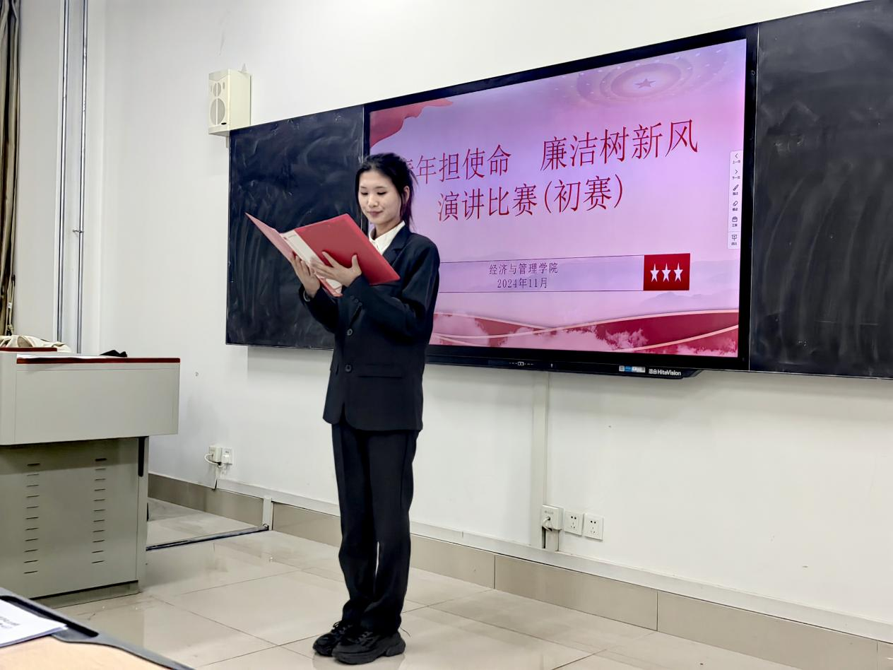 为深入贯彻党的教育方针,培养新时代青年员工公正无私、清正廉洁的道德品质,进一步引导广老员工强化自我约束,牢固树立正确的世界观、人生观、价值观,坚守廉洁自律底线,太阳集团tyc539于2024年11月4日在豁然楼A317教室成功举办了一场以“青年担使命,廉洁树新风”为主题的演讲比赛。活动邀请了院员工会部长担任评委。