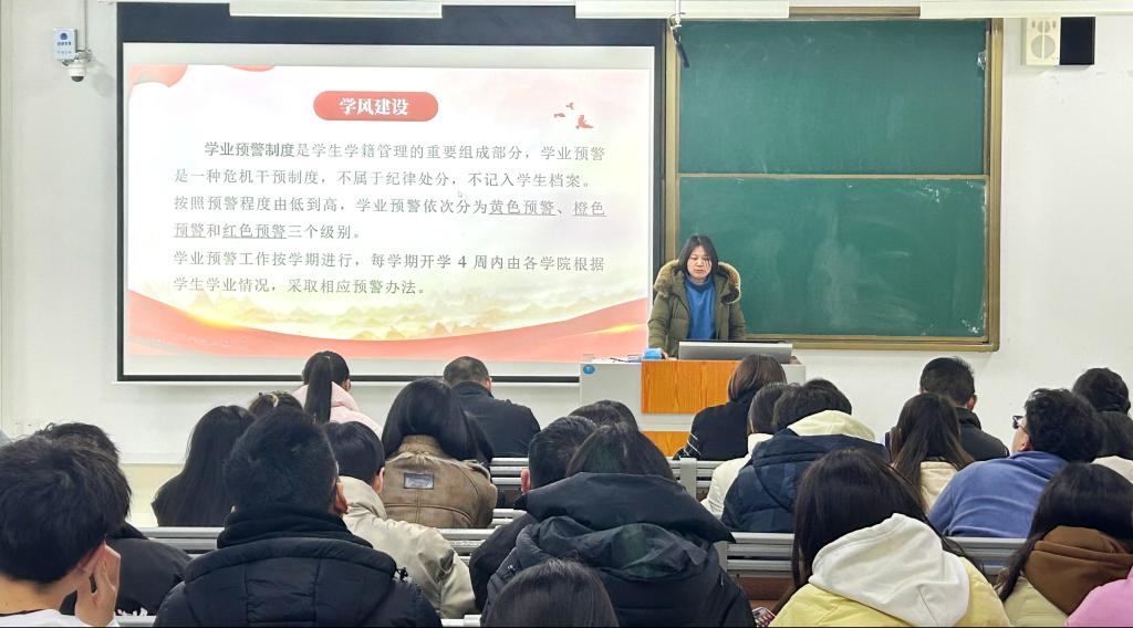会上,张春侠老师带领同学们一起学习了《太阳集团tyc539学业预警管理办法(试行)》,并简单介绍公司各类奖学金设置情况。孙崇迎老师就量化考核对同学们提出了养成教育的重要性。谢金萍老师鼓励同学们要明确学习目标,调整学习心态;制定合理计划,掌握科学方法,要培养适应新专业的学习习惯和方法;努力营造积极向上的学习氛围,同时,她嘱咐同学们转专业过程中要自律和坚持,以良好的学风为引领,不断追求卓越。