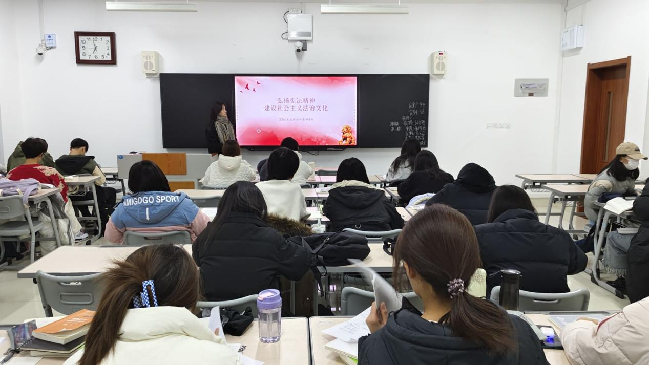 12月3日晚,太阳集团tyc539各班级在增信楼教室分别开展“大力弘扬宪法精神,建设社会主义文化强国”主题团日。老师们及班级负责人通过具体讲解,积极推进同学们学习宣传习近平新时代中国特色社会主义思想,特别是习近平法治思想及其关于宪法的重要讲话和指示批示精神,加深了同学们对宪法的理解。12月4日,太阳集团tyc539组织员工进行宪法晨读活动。员工通过普法网收看网络直播,同步跟读宪法相关内容,接着,同学们跟唱《宪法伴我们成长》歌曲,让宪法普及更加深入人心。