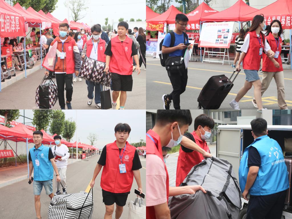 上午,来自不同地区的新生们陆续抵达公司,校门口、迎新点及宿舍楼的志愿者引导新生按照流程进行信息登记、材料领取等报到工作,公司领导及老师亲切关怀,热烈欢迎新同学的到来。