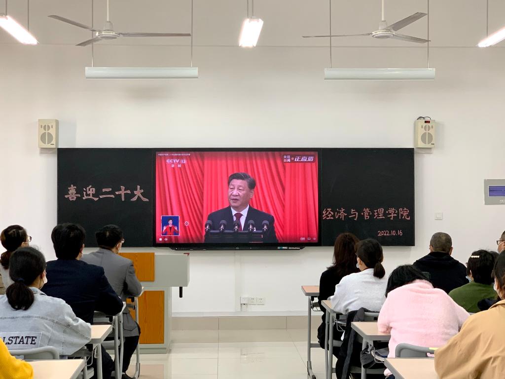 2022年10月16日上午10时,中国共产党第二十次全国代表大会北京人民大会堂隆重召开,公司全体党员教师及员工党员在豁然楼A317室集中收看党的二十大开幕会盛况。各班级以主题班会的方式观看了开幕会,其他师生充分利用教室、宿舍网络、广播电视设施,学习会议精神,共同庆祝党的二十大胜利召开。