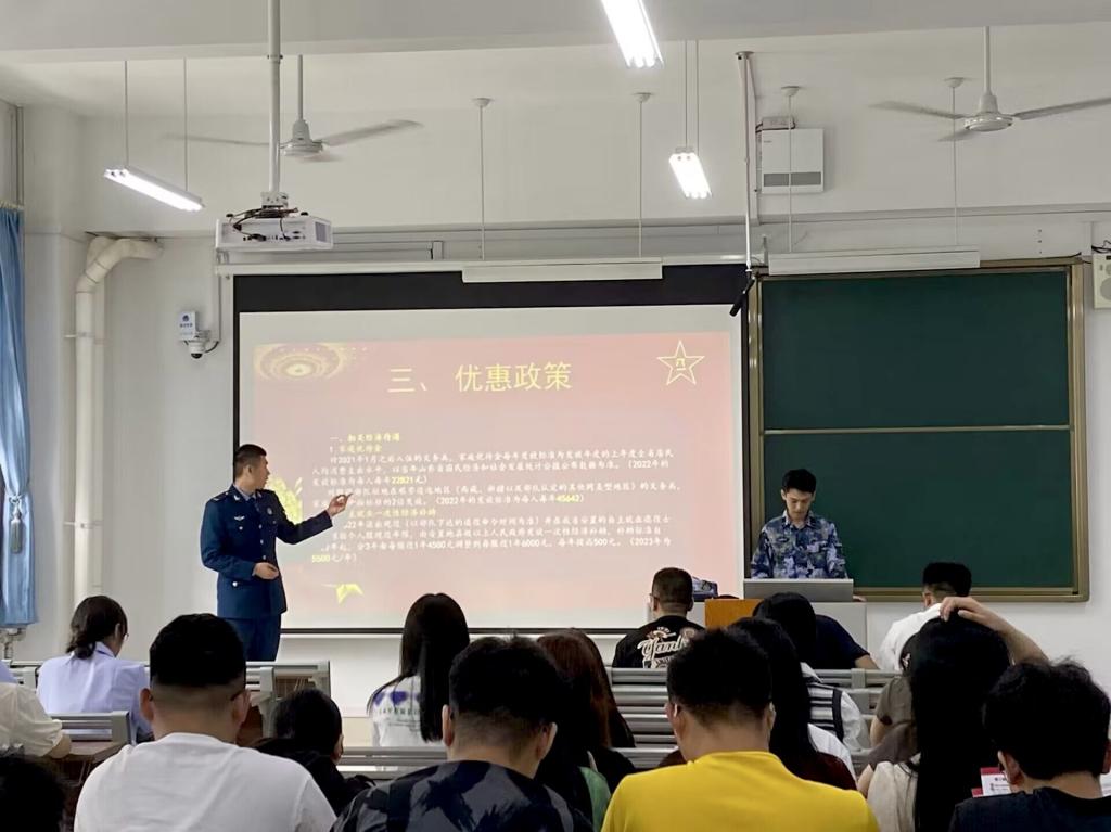 6月12日,何金泰主持国防教育班会,阐述国防重要性并解读入伍政策。退伍员工刘屹现身宣讲,帮助同学们进一步提高国防安全意识。
