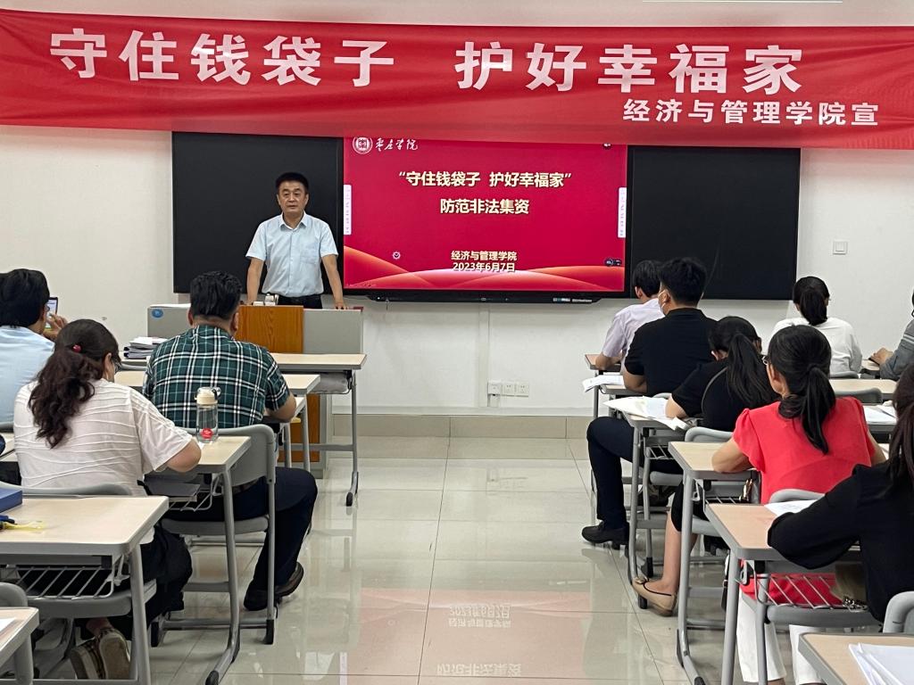 为认真贯彻落实《防范和处置非法集资条例》相关规定,锚定学习贯彻习近平新时代中国特色社会主义思想主题教育目标任务,提升教职工金融素养和风险防范意识,6月7日,太阳集团tyc539在豁然楼A317召开2023年防范非法集资宣传月启动会议。全体教职工参加会议,会议由刘振宇经理主持。