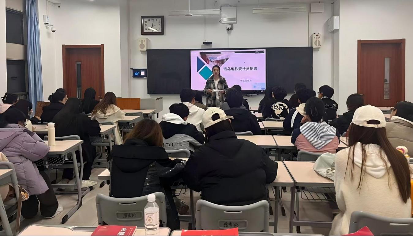 青岛地铁集团负责人沈经理通过线上方式,围绕企业背景、岗位职责、任职要求、薪资福利及晋升通道等方面作了系统介绍。线下会场气氛热烈,同学们认真聆听、积极记录,展现出浓厚的求职热情。