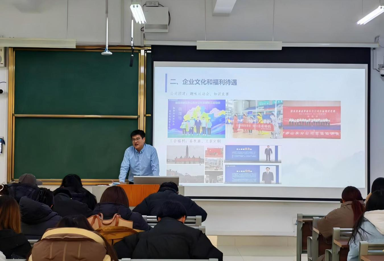招聘会上,国泰海通证券枣庄燕山路营业部招聘经理杨光详细介绍了公司的发展历程、企业文化,重点讲解企业在资产管理、投资顾问等核心业务方面的服务特色,并明确了相关岗位的职责要求与任职条件。在互动环节,同学们围绕福利待遇、晋升机制、实习安排等内容积极提问,杨经理逐一耐心解答,现场气氛融洽热烈。