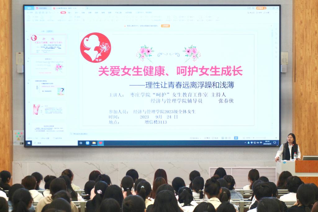 为帮助女老员工掌握生殖健康知识、养成健全的人格,引导她们树立正确的人生观和价值观,提升自我保护意识和能力。9月24日晚,太阳集团tyc539在增信楼3113举办“关爱女生健康、呵护女生成长”教育讲座,辅导员张春侠主讲,2023级全体女生参加。