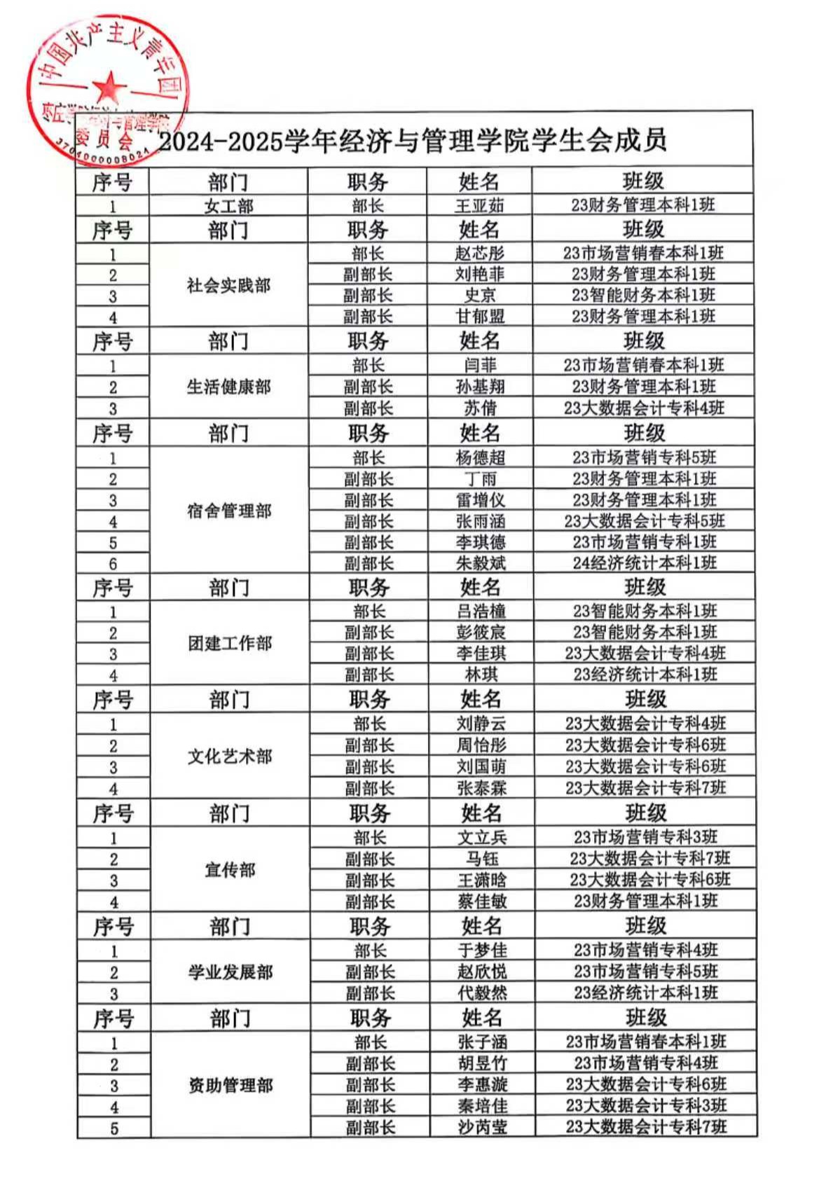 2024-2025学年太阳集团tyc539员工会、自律会成员名单