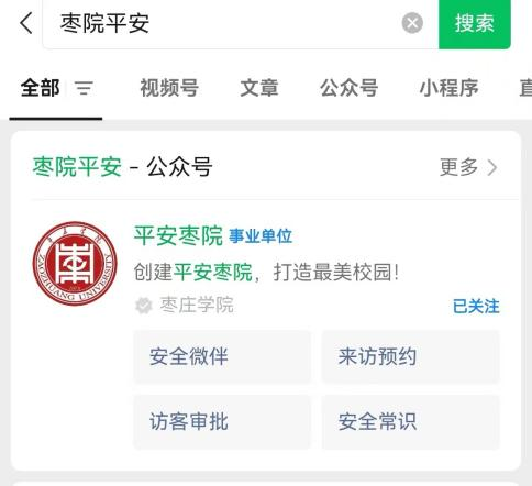 微信关注“枣院平安”——来访预约——访客预约——选择薛城校区 太阳集团tyc539,接访人亓贵芝,接访人电话19506763139——点击下一步,后面如实填写,添加来访人——提交等待审核——联系亓老师审核——审核通过。